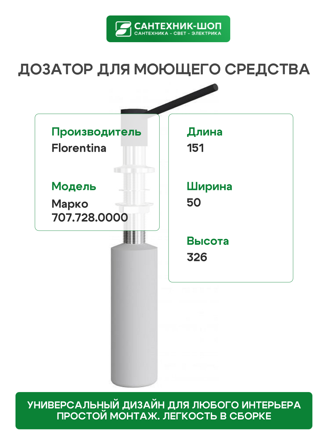 Самовывоз сегодня — Симферополь,В нашем магазине, Технолидер, вы можете купить Дозатор для моющего средства Florentina МАРКО Антрацит, с доставкой по всему Крыму. Выгодные условия дставки и оплаты. Удобный онлайн магазин техники и электроники