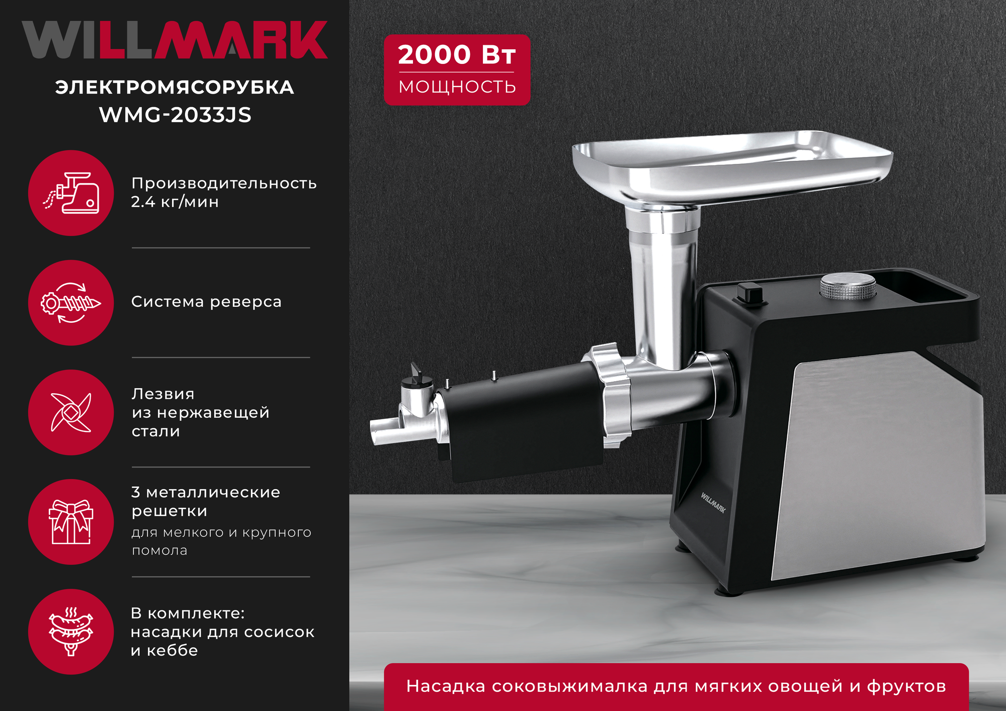 Самовывоз сегодня — Симферополь,В нашем магазине, Технолидер, вы можете купить Мясорубка WILLMARK WMG-2033JS, с доставкой по всему Крыму. Выгодные условия дставки и оплаты. Удобный онлайн магазин техники и электроники