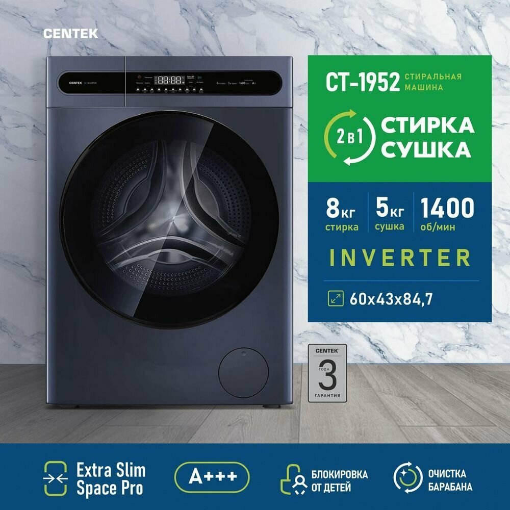 Самовывоз уточняйте у менеджера — Симферополь,В нашем магазине, Технолидер, вы можете купить Стирально-сушильная машина Centek CT-1952 серый, с доставкой по всему Крыму. Выгодные условия дставки и оплаты. Удобный онлайн магазин техники и электроники