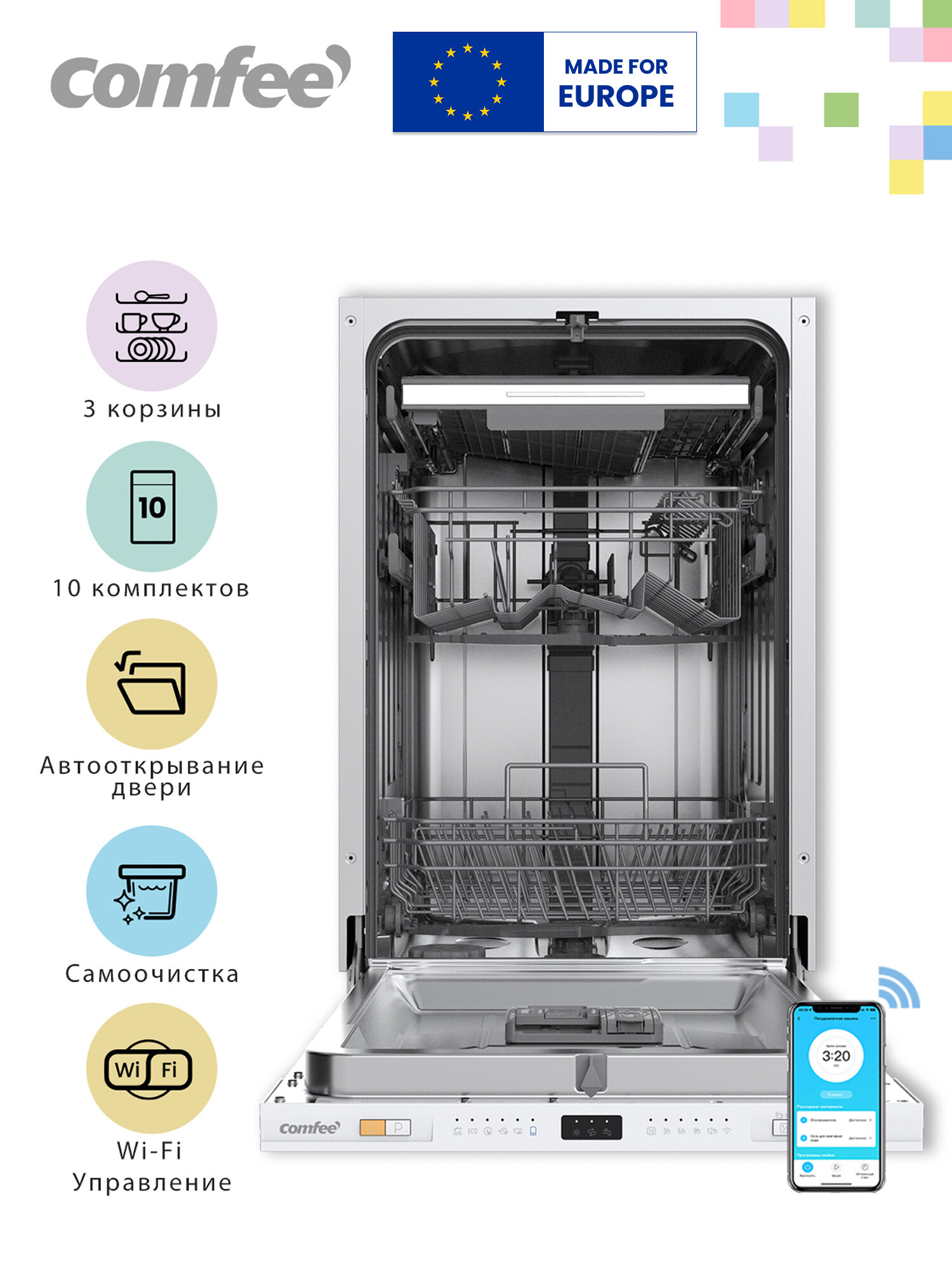 Самовывоз в понедельник — Симферополь,В нашем магазине, Технолидер, вы можете купить Встраиваемая посудомоечная машина Comfee CDWI453i (Wi-Fi з-д Midea), с доставкой по всему Крыму. Выгодные условия дставки и оплаты. Удобный онлайн магазин техники и электроники